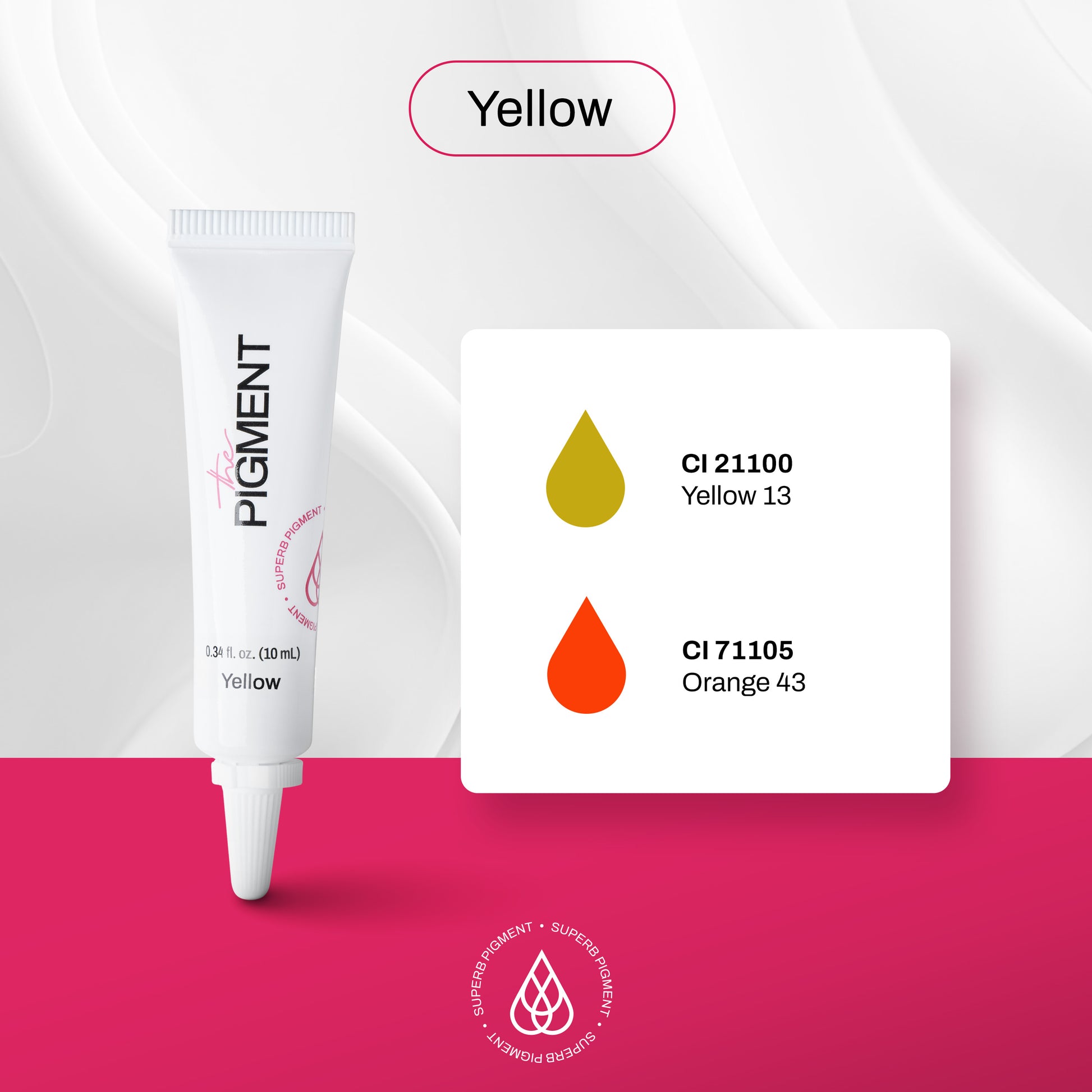 Yellow is a modifier pigment used in microblading exclusively in combination with Red. This blend allows ashy or cool results to be brightened and shifts the shade towards a warmer direction.